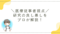 【医療従事者視点】研究の良し悪しを研究のプロが解説!